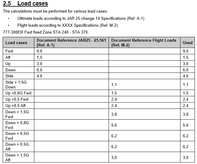 This spreadsheet presents the data tables used for the automatic association of standard allowable to each seat. This spreadsheet should be read in association with the “Standard seat allowable” report. For standard seat analysis 16 different seating arrangements have been recorded. Each of them leads to different seat interface load allowable. Additionally, individual seat weight and seat row weight depend on those 16 different seating arrangements combined with a seat pitch. This combination generates 76 different seat and seat row weight possible allowable. In this “std_allowable_selection” spreadsheet the logic behind the automatic association of a seat IFL allowable and seat weight allowable is recorded.